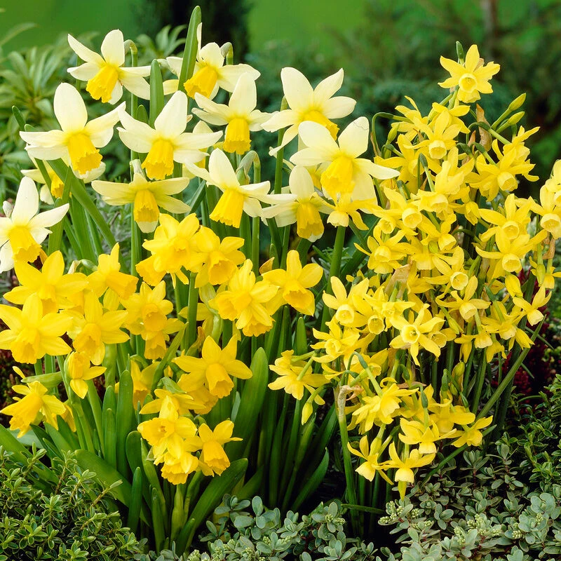 Mix of miniature daffodils. Grow this charmer in rock gardens, along pathways, or in containers to leave outside or carry indoors when the flowers bloom.Â