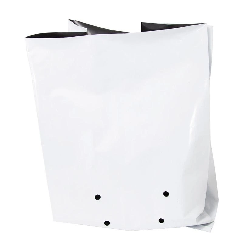 Heavy-duty (3 mil.) reusable grow bags are economical and easy to use. They are self-standing once filled with soil. They have pre-punched holes to allow for good water drainage and they come packed flat.